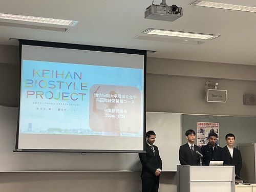 また、環境文化学科の卒業制作展も行われ、池坊短期大学で学んだ2年間の集大成として、各ゼミで発表と作品展示を行いました。